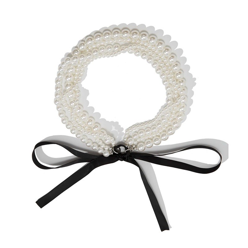 Denna choker kommer att bli en ovärderlig del av din smyckeskollektion. Tack vare sin mångsidighet kan du bära den både till kvällsklänningar och till vardagsoutfits för att fräscha upp din dagliga look. Dess design med pärldetaljer och svart rosett ger dig den elegans du kommer att älska. Låt detta stycke framhäva din personlighet och uttryck din stil med detta vackra smycke.