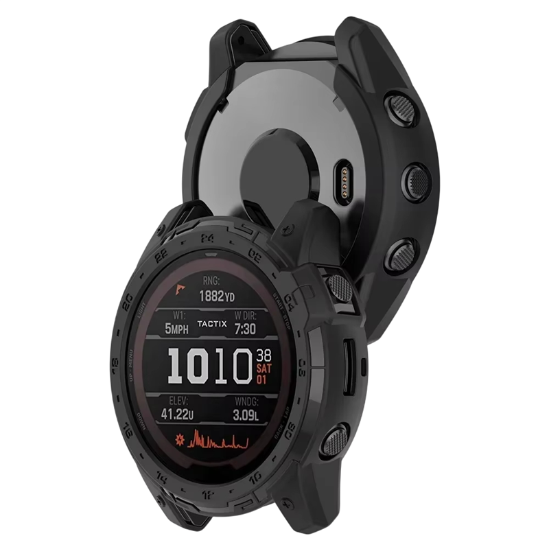 Flexibelt silikonram för Garmin Tactix 7 stöttålig TPU-skydd med exakta öppningar för fullständig skydd av klockan