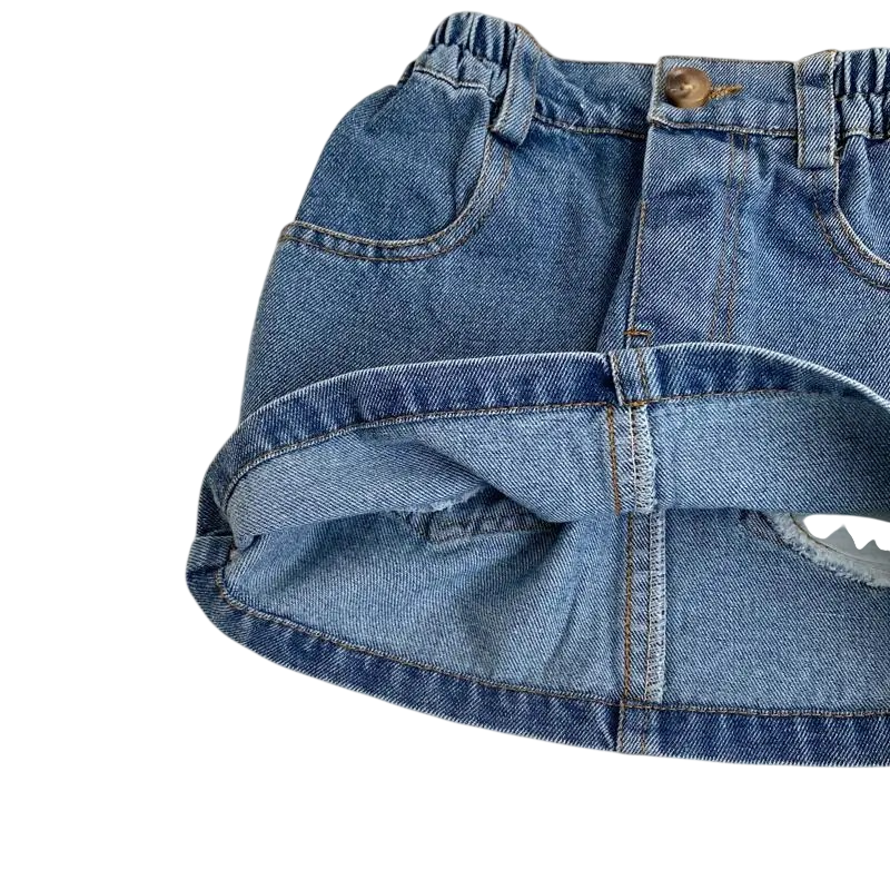 Denna jeanskjol är designad med fokus på komfort och praktisk användning. Tack vare den enkla snittet och högkvalitativt utförande behåller den sin form även vid frekvent användning. Den avslappnade looken möjliggör enkel skapelse av både sportiga och mer eleganta outfits beroende på valda tillbehör. Om du letar efter en mångsidig del till flickornas garderob som förenar stil, komfort och funktionalitet, är denna kjol ett utmärkt val för varje dag.