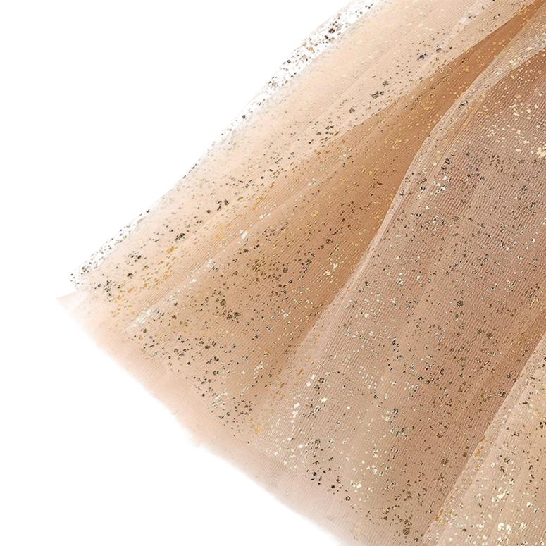Kjolen är designad för att förena stil, komfort och praktisk användning. Den glänsande effekten av glitter skapar ett imponerande intryck vid varje rörelse. Kvalitetsbearbetningen hjälper till att behålla formen även vid regelbunden användning. Om du letar efter en framträdande och elegant bit till flickans garderob, kommer denna kjol att vara ett utmärkt val för speciella stunder såväl som vanliga dagar med en festlig atmosfär.