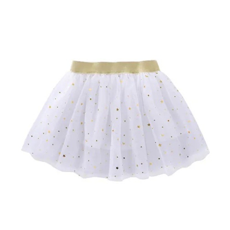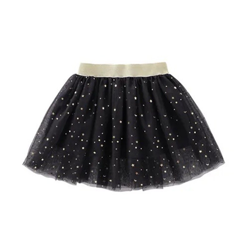Spetsflickkjol med stjärnor och glitter, längd över knäna, bekväm bomullsmaterial. Fullständig beskrivning