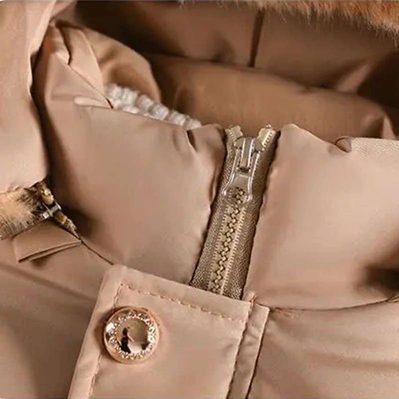 Tack vare kombinationen av bomull och polyester erbjuder jackan hög värmekomfort, som varje barn kommer att uppskatta vid utomhusaktiviteter och vid vardagligt bruk. Fickor med pompom understryker jackans söta karaktär och erbjuder samtidigt praktisk användning för småsaker eller för att värma händerna. Huvan med päls är inte bara en estetisk detalj, utan också ett funktionellt skydd mot vinterpåverkan. Den dubbla stängningen garanterar ett pålitligt slut och bidrar till bättre isolering mot kylan. Denna jacka är det perfekta valet för föräldrar som söker en kombination av stil, funktionalitet och komfort i ett elegant vinterplagg.