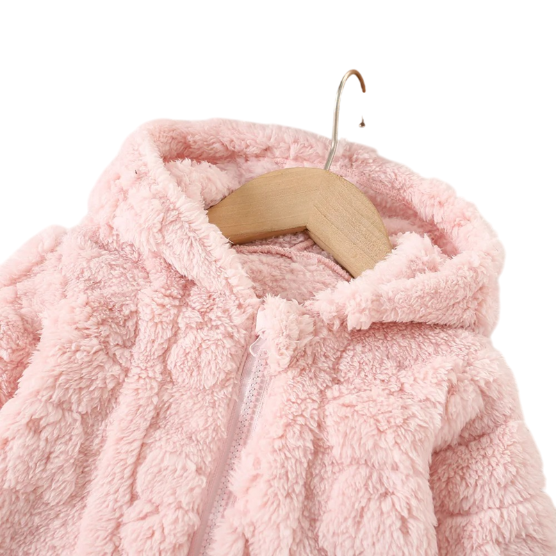 Denna flickors vinterjacka erbjuder utmärkt värmekomfort och glädjer samtidigt med sin gulliga plyschdesign. Polyesterkonstruktionen garanterar en behaglig bärkomfort, lätt underhåll och lång livslängd, vilket föräldrar kommer att uppskatta vid daglig användning. Plyschytan ger jackan mjukhet och värmande egenskaper, vilket gör att barnen får komfort även under kalla dagar. Huva skyddar mot vind och kyla, medan björnmotivet ger modellen ett lekfullt, mjukt och vänligt utseende. Dragkedjan möjliggör enkel och snabb påklädning, vilket främjar barnets självständighet och förenklar den dagliga förberedelsen.