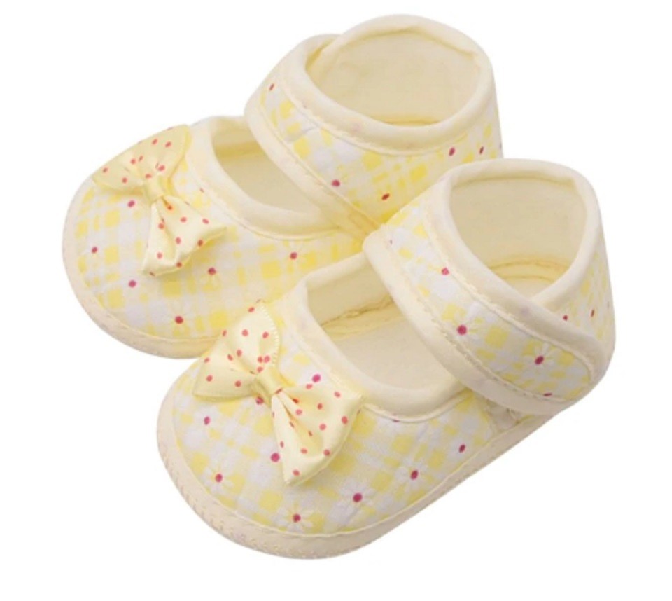 Flickskor med rosett kan användas i en barnvagn eller bilbarnstol.