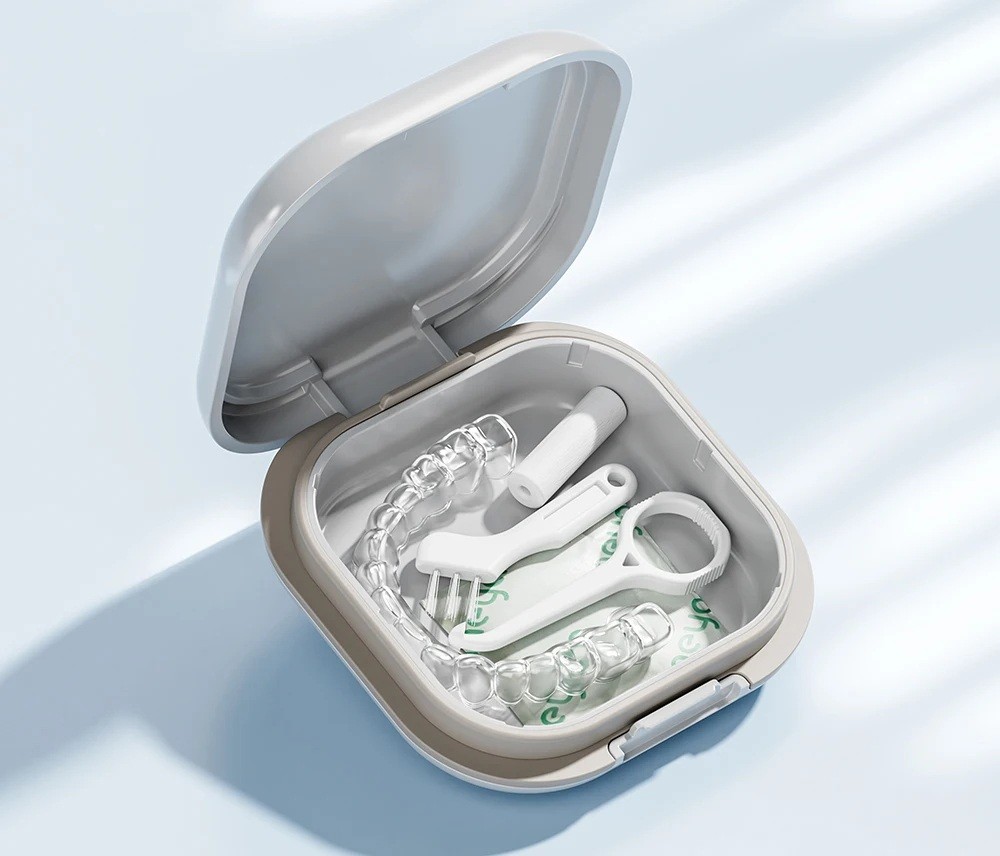 Fodralet för tandställningar och tandproteser används för säker förvaring av tandvårdsprodukter. Tack vare de kompakta måtten 8 × 8 × 2,4 cm är det lämpligt för daglig transport och lagring. Konstruktionsdesignen inkluderar ett stängningsbart lock som hjälper till att skydda innehållet inuti fodralet.