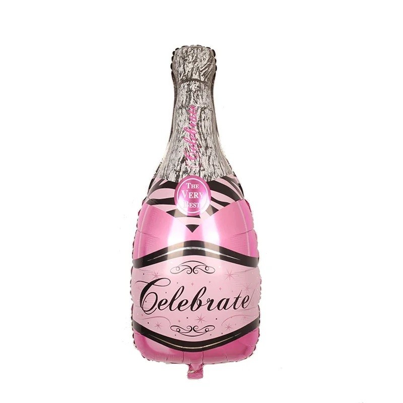 Foliebaljongflaska Celebrate 100 × 49 cm rosa-silver dekorativt ballong i form av flaska för fester, kalas och festlig dekoration
