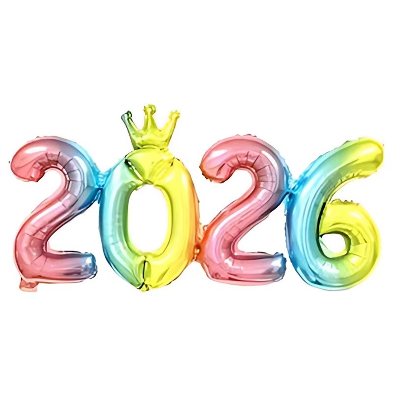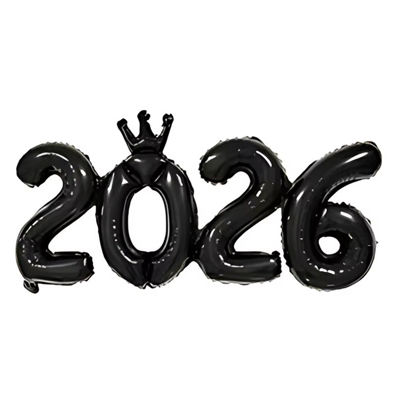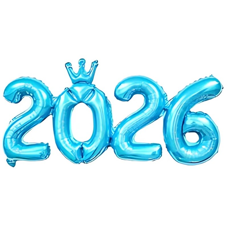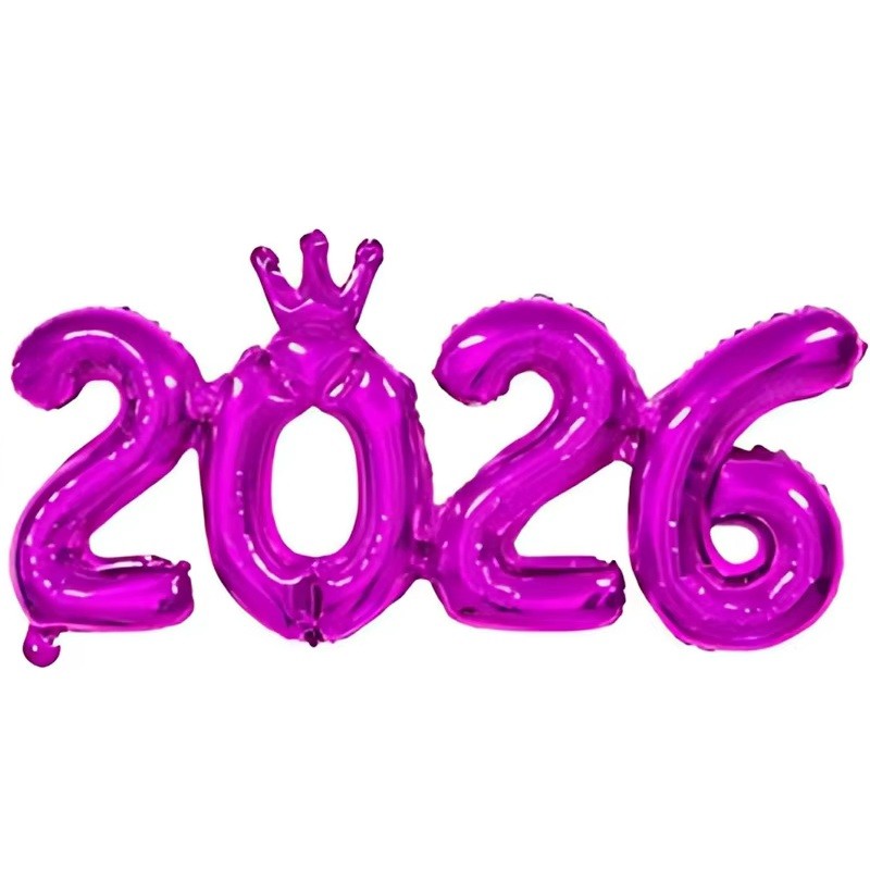 Stora folieballonger med siffrorna 2026 för nyårsdekoration, nyårsfest, jul eller studentfest. Stiliga och lätta att blåsa upp. Fullständig beskrivning