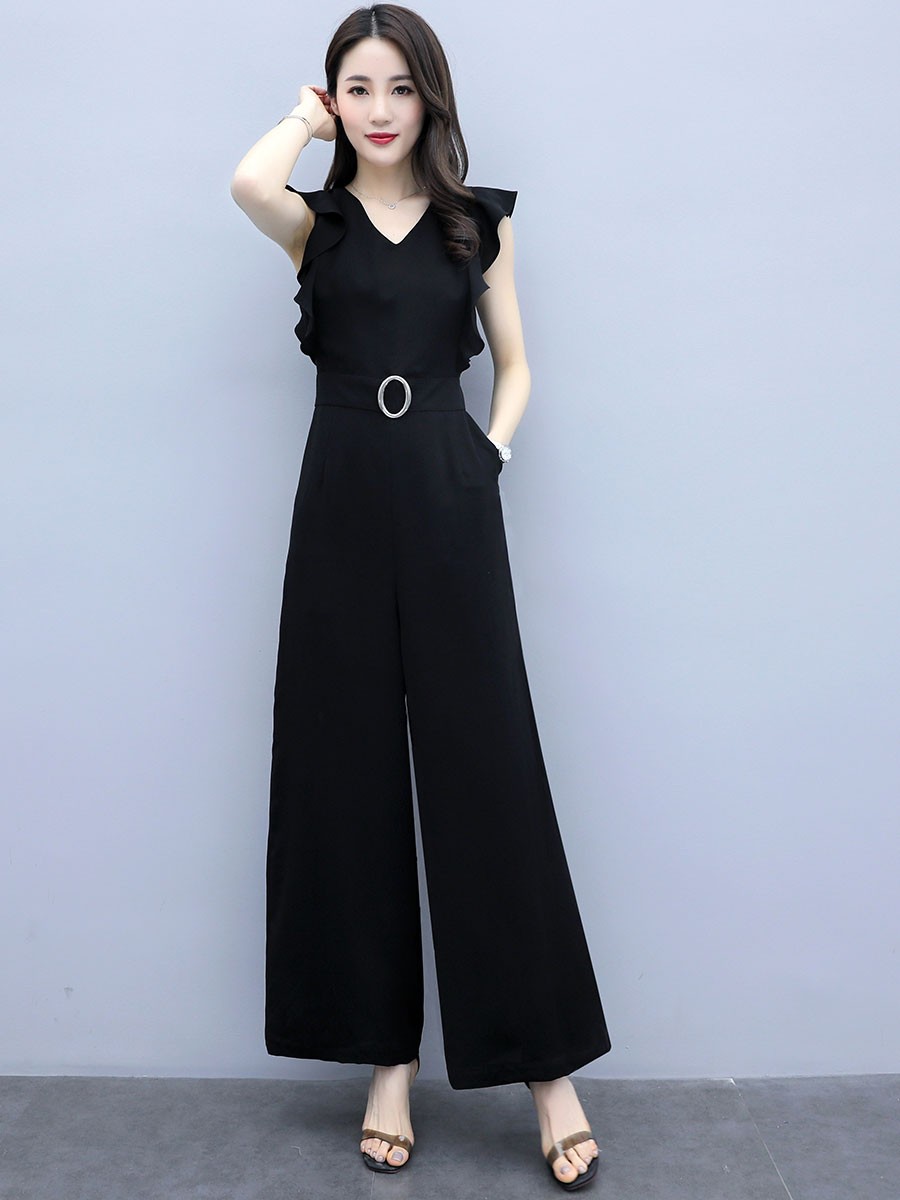 Startsida Startsida Kläder och accessoarer Damkläder Damoveraller Dam långa overaller Formell jumpsuit för kvinnor med volanger och bälte