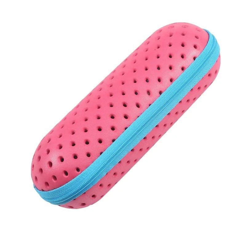 Denna förvaringsbox för simglasögon är ett praktiskt tillbehör för varje simmare som vill skydda sina glasögon och förlänga deras livslängd. Tack vare den robusta konstruktionen av EVA-material skyddar den pålitligt glasögonen från stötar, repor och deformation. Den ventilerade konstruktionen möjliggör luftcirkulation, vilket hjälper till med snabbare torkning och minskar uppkomsten av lukt. De kompakta måtten säkerställer enkel förvaring i sportväskan eller ryggsäcken. Fodralet är lämpligt för de flesta standard simglasögon.