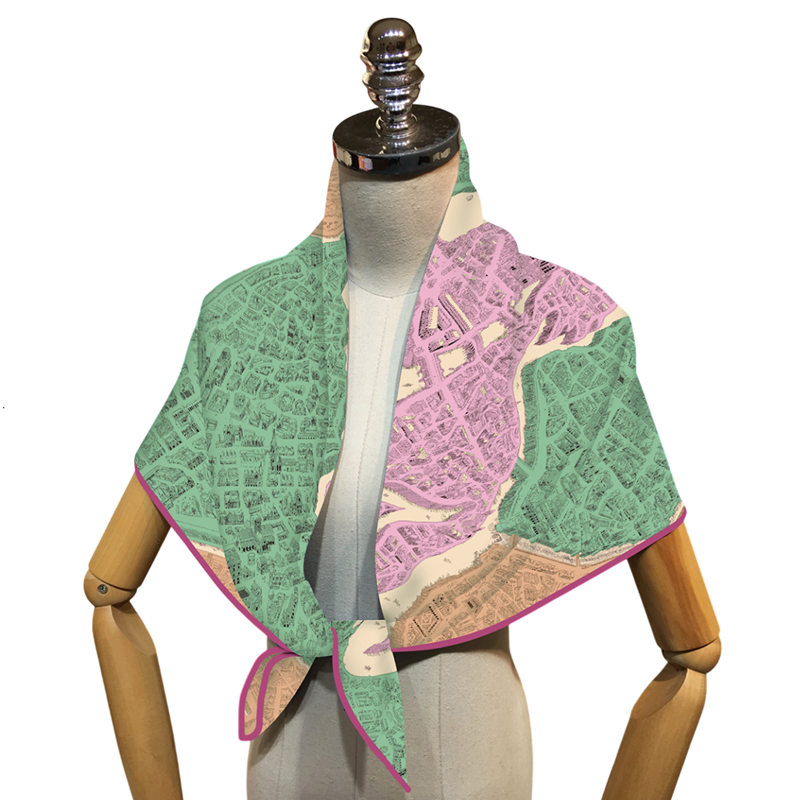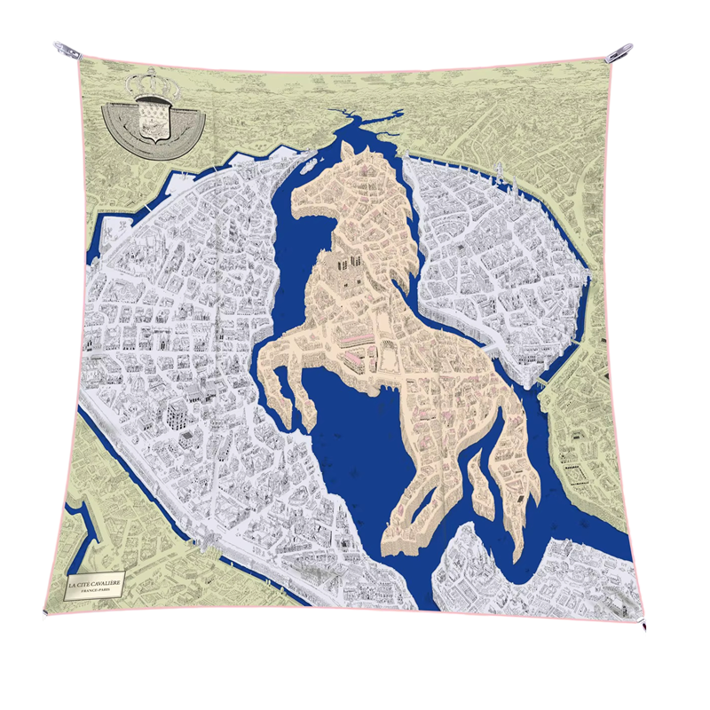 Fransk elegans med hästmotiv Dam fyrkantig scarf Multifunktionell för huvud hals hår kropp Modetrend Fyra årstider
