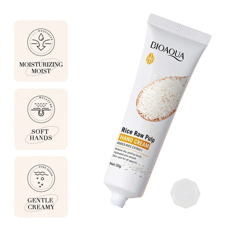 Fuktighetskräm för händer med risextrakt är avsedd för regelbunden vård av torra och utsatta handskinn. Dess lätta sammansättning möjliggör snabb absorption utan fet känsla, vilket gör den idealisk för användning under hela dagen. Risextrakt används traditionellt inom kosmetisk vård för att stödja återfuktning och mjukgöra huden. Krämen hjälper till att återställa hudens naturliga balans och ökar dess komfort vid daglig användning. Den är lämplig för året runt-vård oavsett väder.