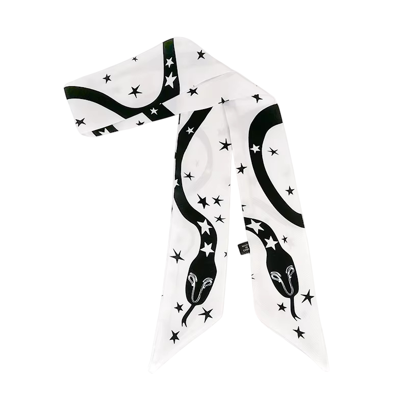 Elegantisk lång scarf för kvinnor, lämplig för huvudet, i håret eller som dekoration för handväskan. Lyxig accessoar för hela året. Fullständig beskrivning