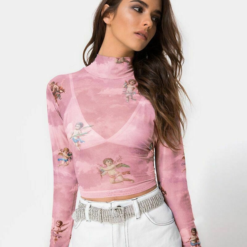Genomskinlig T-shirt för kvinnor med änglar