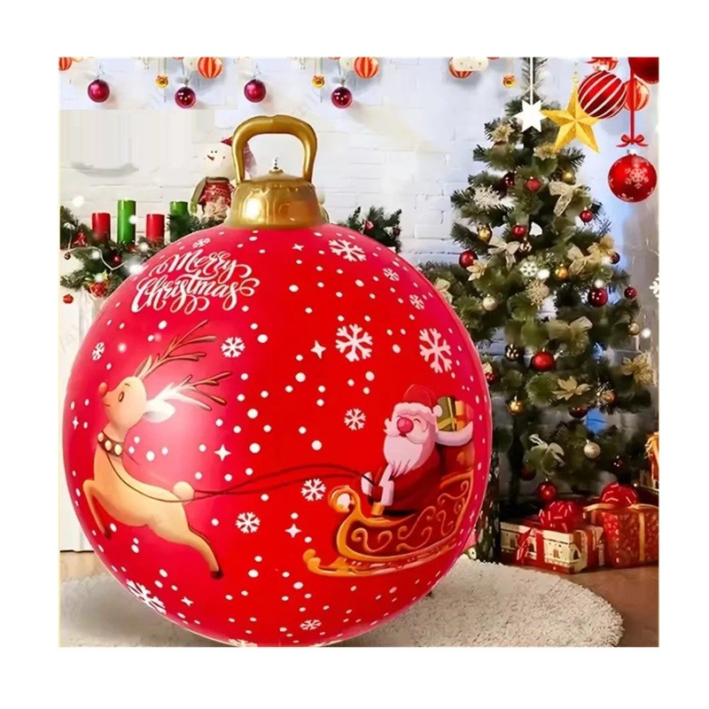 Gigantisk uppblåsbar juldekoration 60 x 80 cm Kula med tryck av jultomten på släden Utomhus hängande dekoration för vinterdekoration