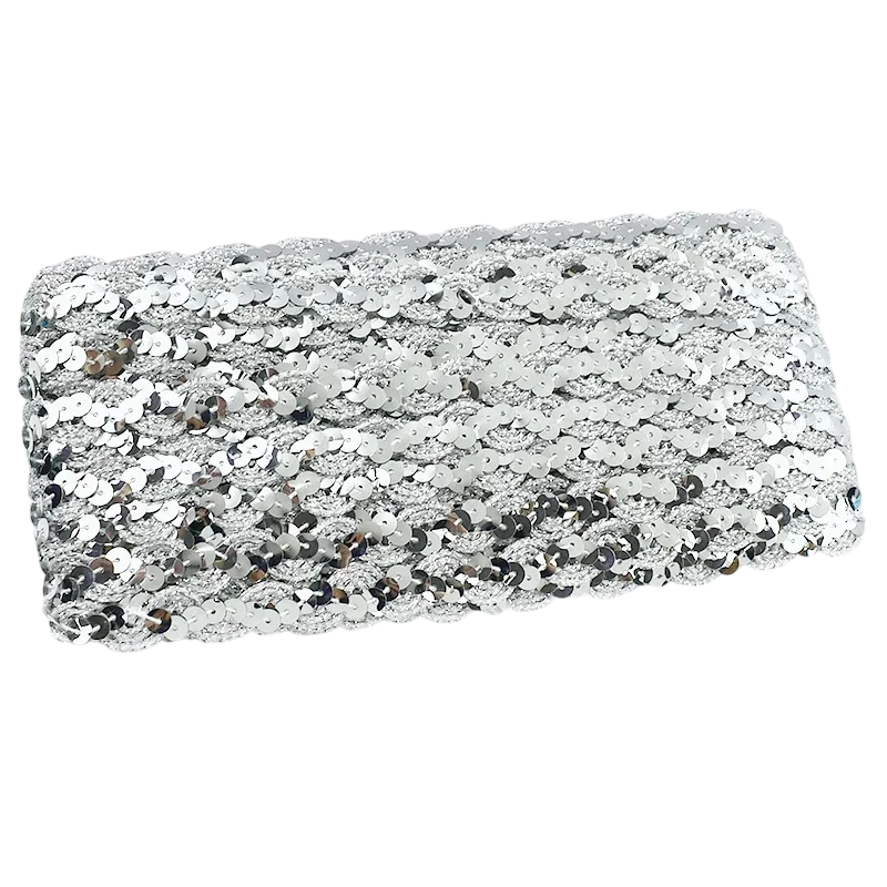 Bandet är tillverkat av högkvalitativt material polyester, som är slitstarkt, starkt och samtidigt flexibelt för kreativ användning. Dekorativa glitter på spetsen skapar en subtil glans som särskilt framhävs på festliga eller högtidliga kläder. Därför är bandet perfekt för dekorativa projekt där en framträdande visuell effekt är viktig.