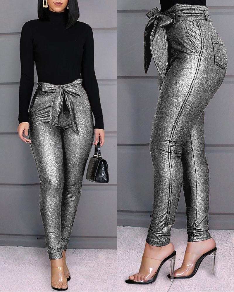 Glittriga kvinnors byxor med rosett