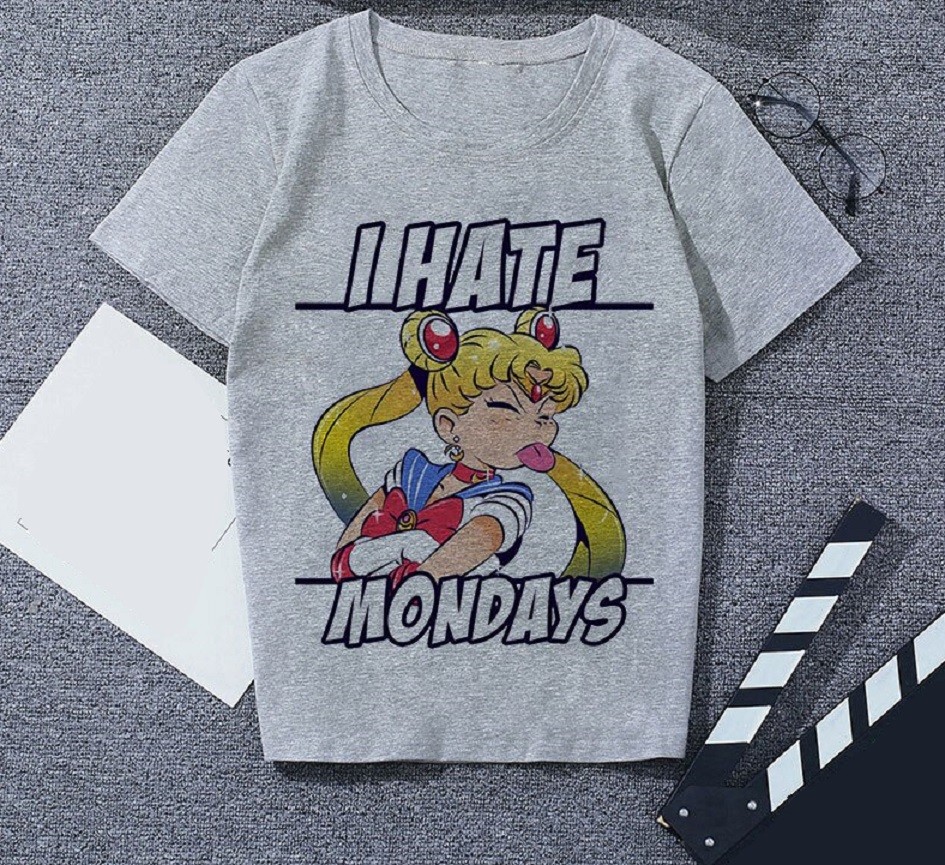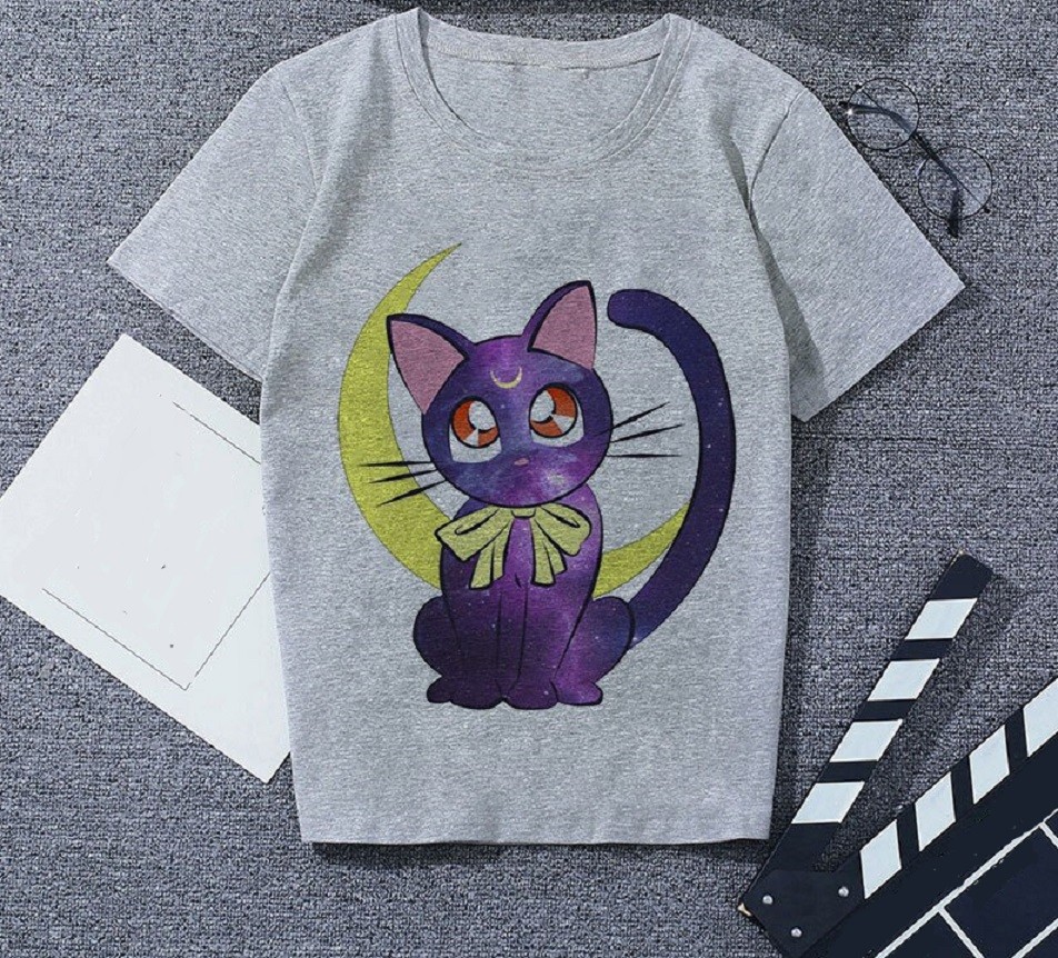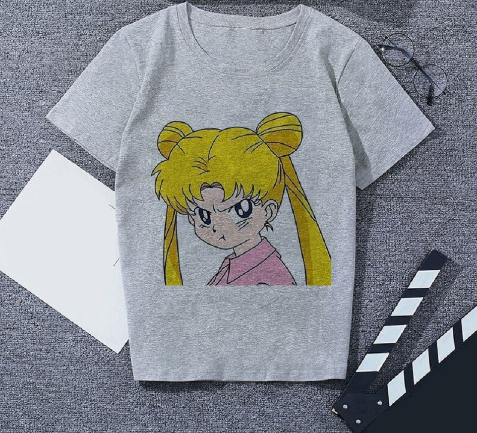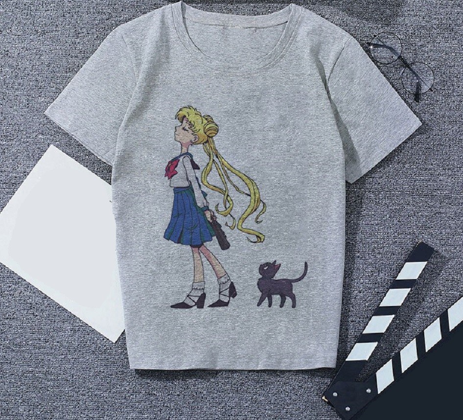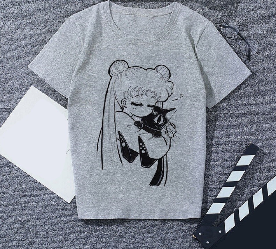 Grå T-shirt för kvinnor med tryck