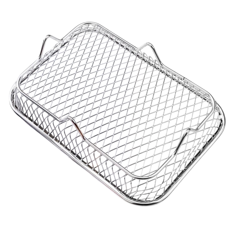 Korgen är utformad för att möjliggöra en jämn värmefördelning runt den tillagade maten. Detta resulterar i en jämn tillagning av ingredienserna från alla sidor. Den perforerade konstruktionen säkerställer optimal värmecirkulation och förhindrar att mindre bitar av livsmedel faller ner i elden eller mellan grillgallren.