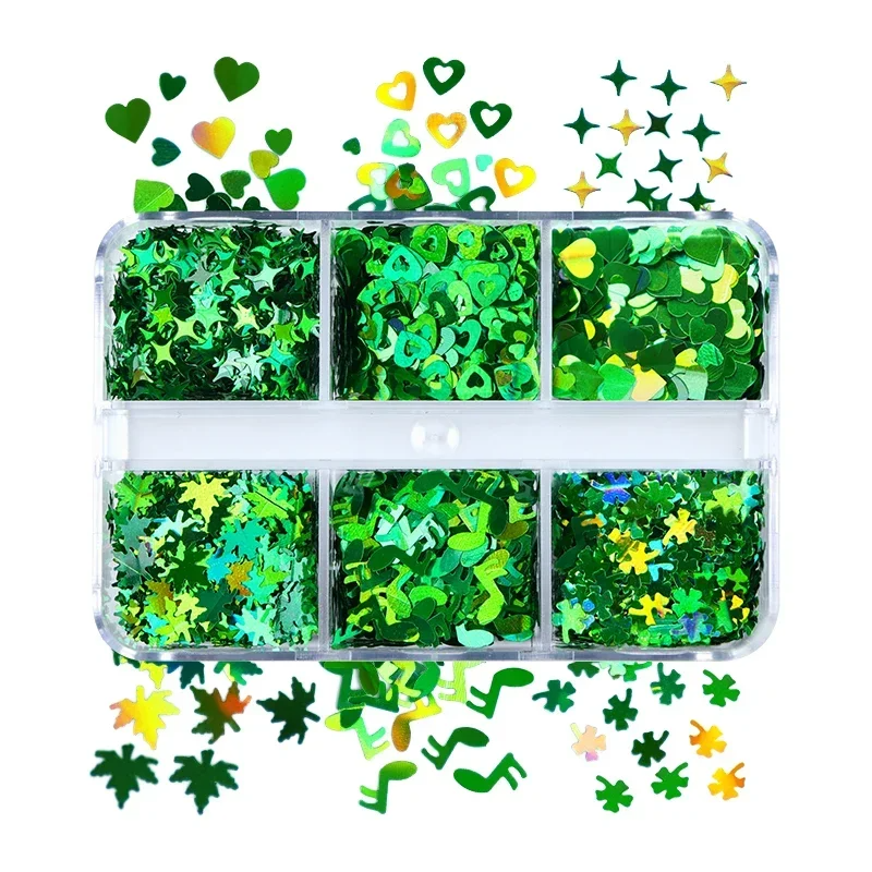 Gröna paljetter 3-4g 6 former Löst paljetter för naglar Glitter för dekorationer Hantverk Konstnärlig dekoration Scrapbooking DIY