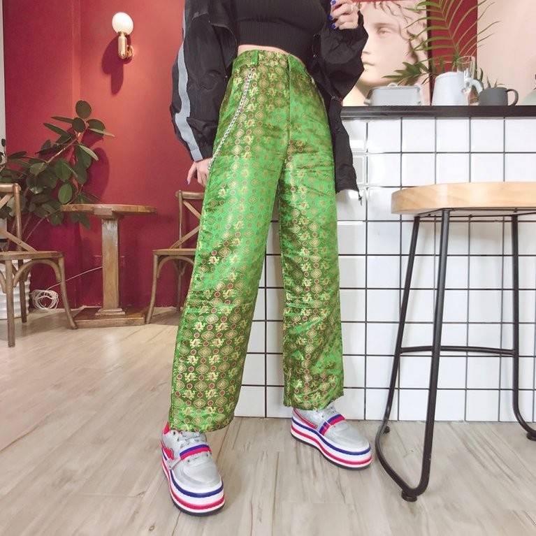 Startsida Startsida Kläder och accessoarer Damkläder Dambyxor Grönmönstrade byxor för kvinnor