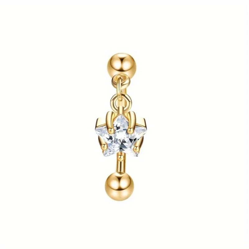 Fin guldsmycke med silverstjärna i rostfritt stål, lämplig för näsa och öra, med ren design och elegant kontrast. Fullständig beskrivning