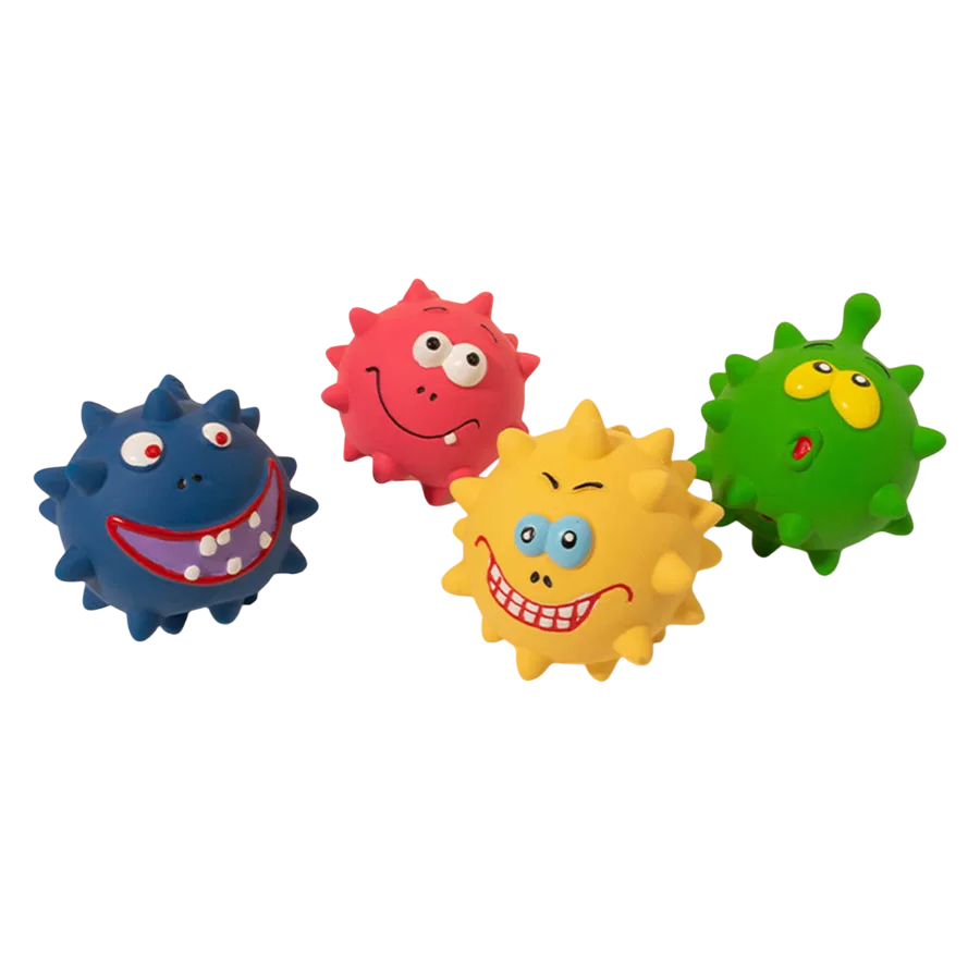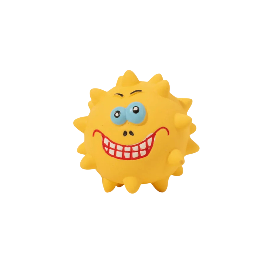 Denna roliga gummipipboll är det perfekta valet för din hunds dagliga lek. Tack vare det hållbara materialet och den inbyggda pipan erbjuder den långvarig underhållning, medan piggarna på ytan varsamt masserar tandköttet och hjälper till att rengöra tänderna. Bollen är lämplig för små och medelstora hundar och finns i fyra glada färgvarianter. Levereras alltid 1 styck i den färg du väljer.