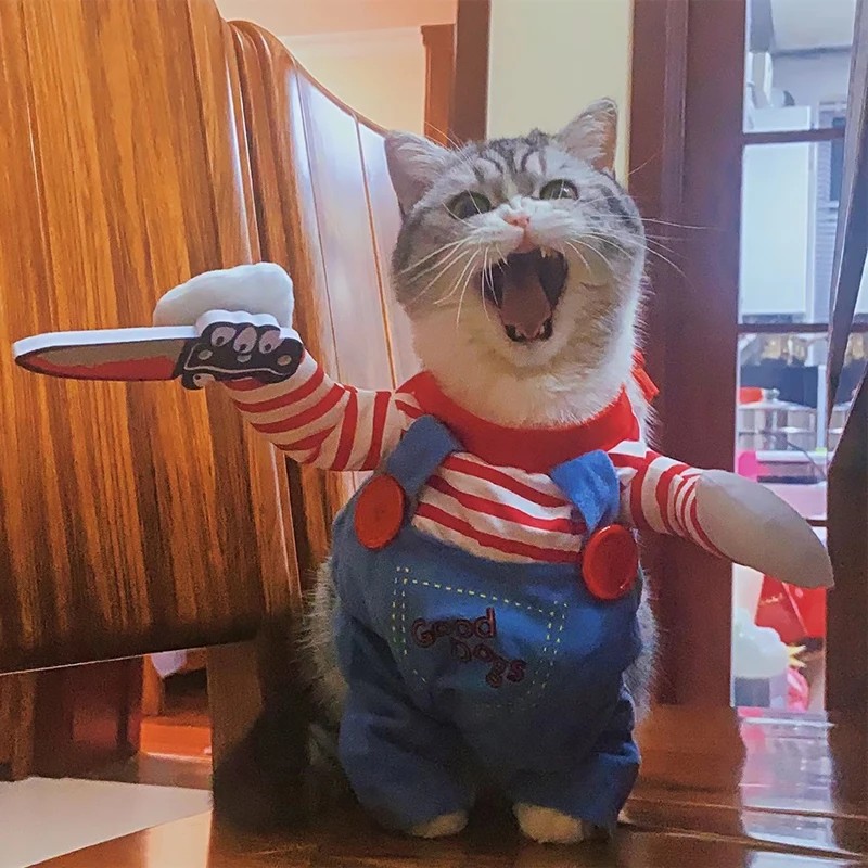 Läskig Halloween kostym med skumkniv och justerbar dräkt förvandlar ditt husdjur till stjärnan på varje Halloween-fest. Fullständig beskrivning