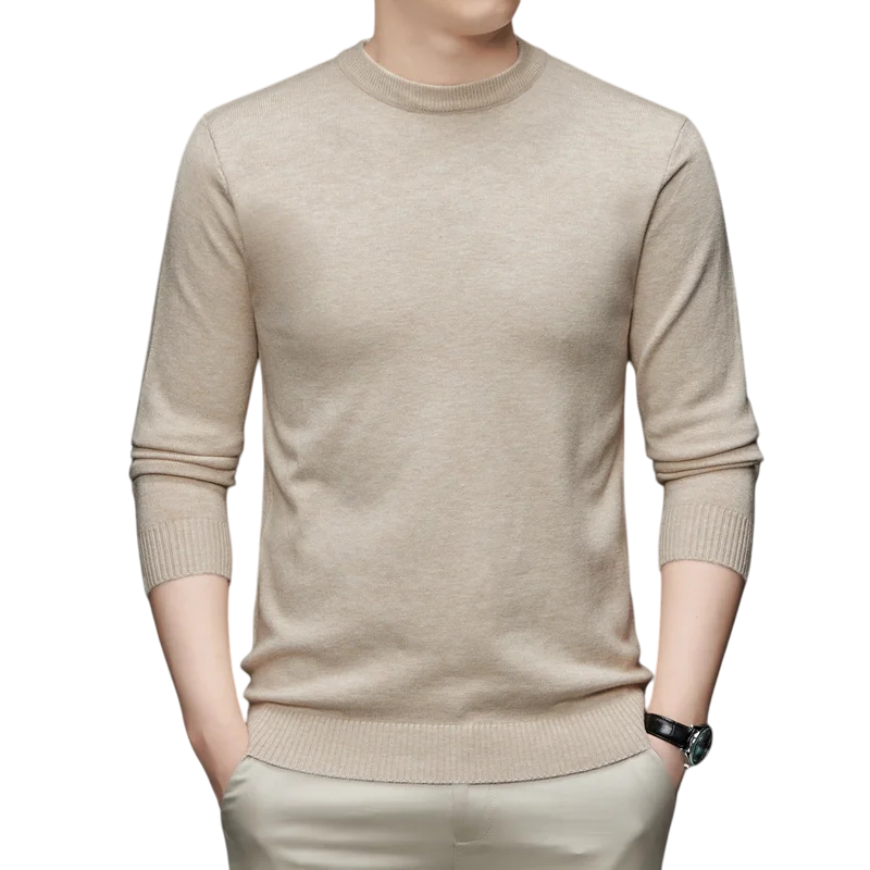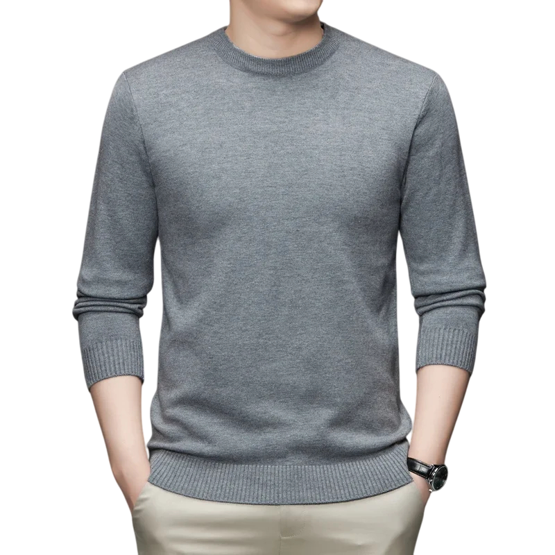 Mjuk herr stickad tröja med långa ärmar och rund halsringning, lätt och bekväm, tillgänglig i olika färger, idealisk för vardagsbruk. Fullständig beskrivning