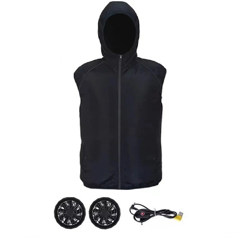 • Paketinnehåll: 1x ventilerande väst, 2x fläktar (9 cm), 1x USB-kabel med kontroll