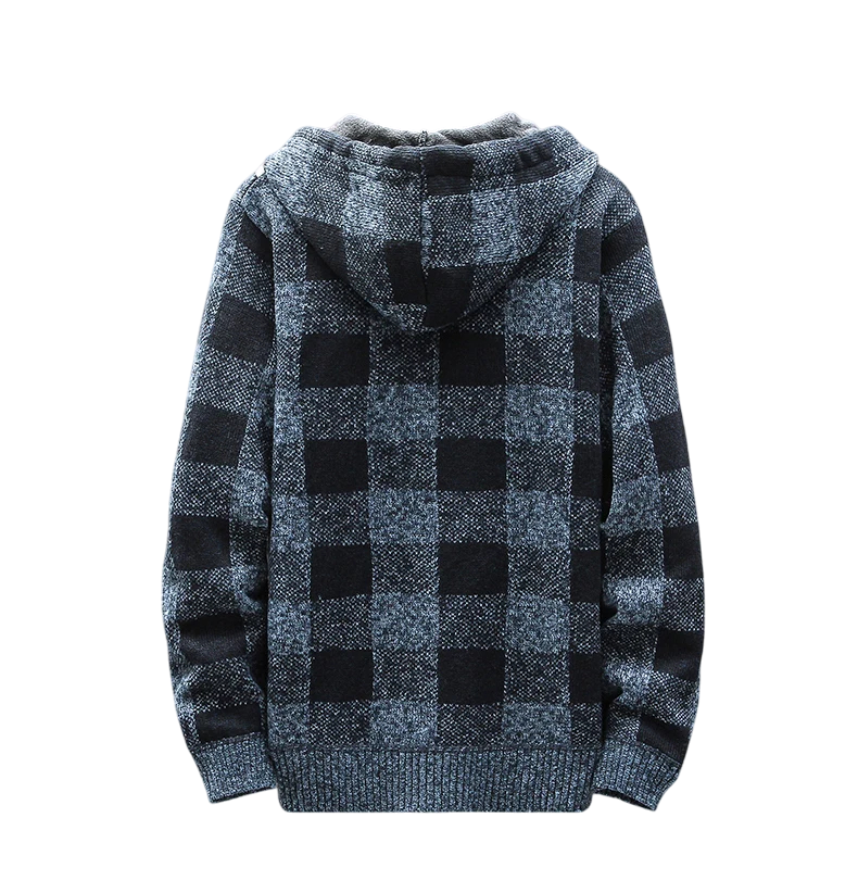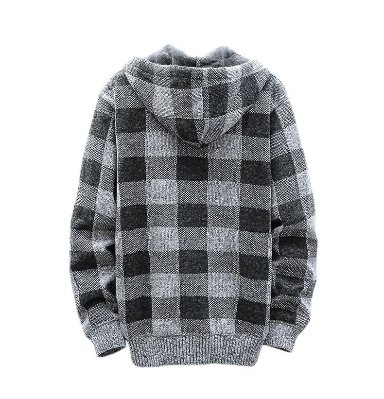 1× herr vinter rutigt kardigan med huva och dragkedja (vald färg och storlek)