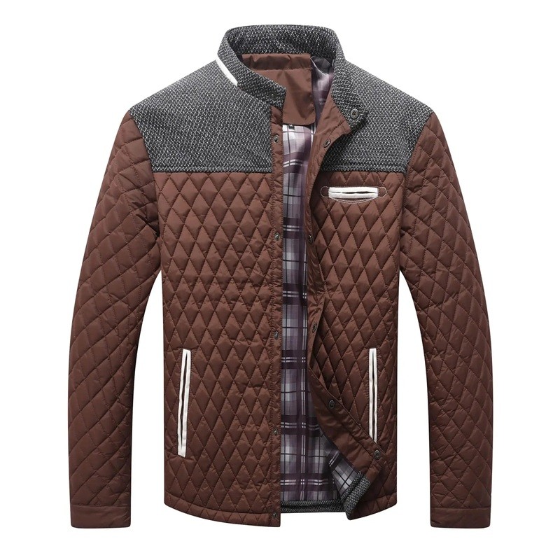 Herr vinterjacka Vindtålig design Knäppning med tryckknappar Polyesterjacka med fickor Polyestertygfoder Varmt bekvämt vinterbärande