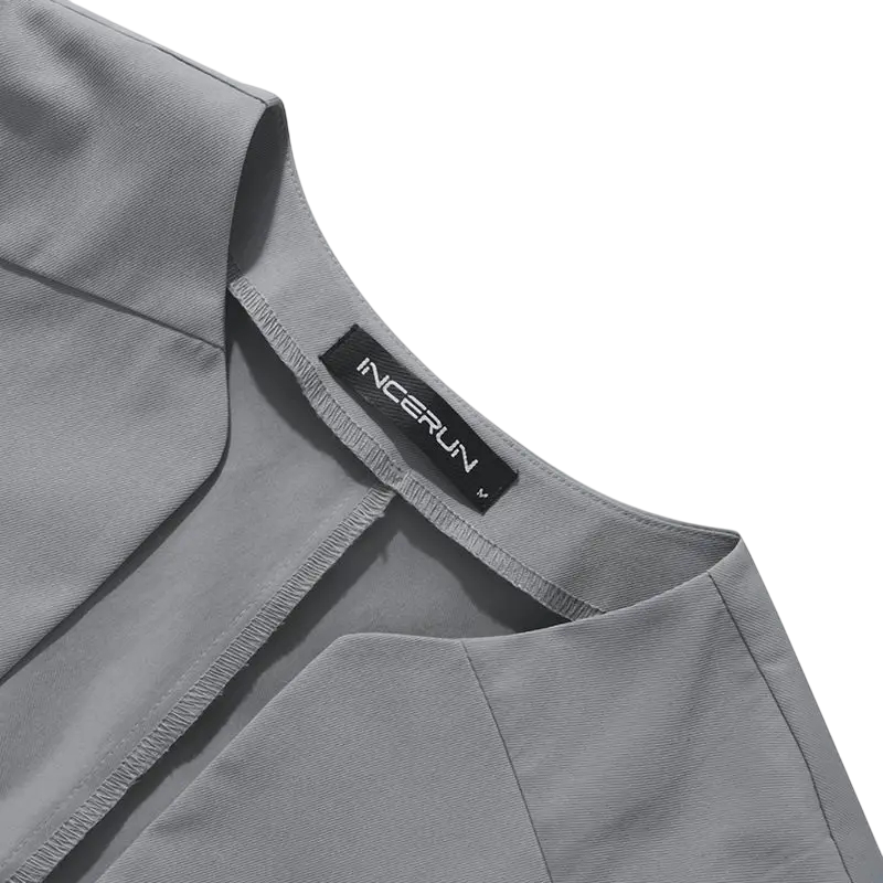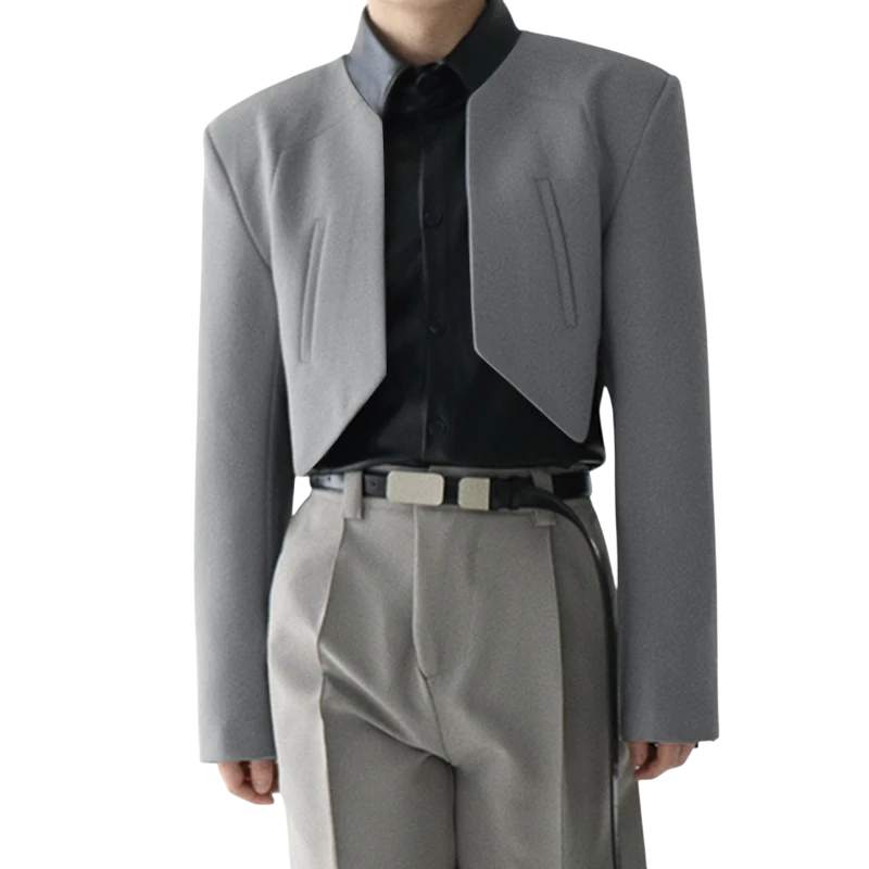 Herrarnas crop top kavaj i polyester Modern kavaj för män utan knäppning med fickor Enfärgad oregelbunden stil kavaj i olika färger