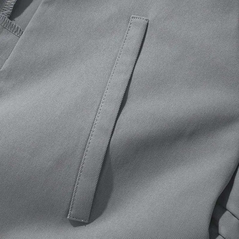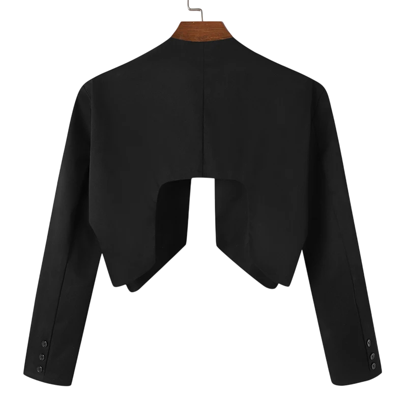 Denne moderna herrarnas crop top kavaj i polyester är den perfekta uttryck för den samtida urbana stilen. Den kortare skärningen med oregelbundet design skapar en framträdande och originell look som skiljer sig från klassiska kavajer. Tillverkad av lätt och andningsbar polyester, erbjuder den maximal komfort vid användning och behåller samtidigt en elegant silhuett. Tack vare avsaknaden av knäppning ger den en avslappnad känsla, medan de praktiska fickorna tillför funktionalitet och modern karaktär. Denna modell passar utmärkt för stiliga kombinationer med t-shirt, skjorta eller högmidjade byxor och är det perfekta valet för modiga män som vill sticka ut.