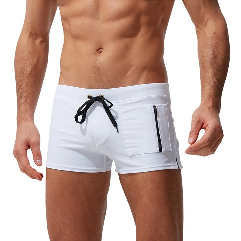 Herrbadbyxor Nylon Enfärgade Med sidoficka På snörning Elastiska Snabbtorkande Lätta Bekväm passform
