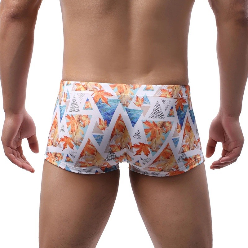Dessa herrbadbyxor kombinerar modern stil med funktionella egenskaper som du kommer att uppskatta vid varje vattenaktivitet. Tack vare det elastiska materialet erbjuder de komfort även vid heldagsanvändning. Det framträdande orange bladtrycket ger en originell stil och sommaratmosfär. Om du letar efter lätta och bekväma badbyxor som sticker ut med sin design, är denna modell ett utmärkt val.