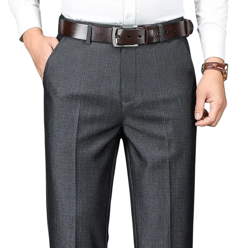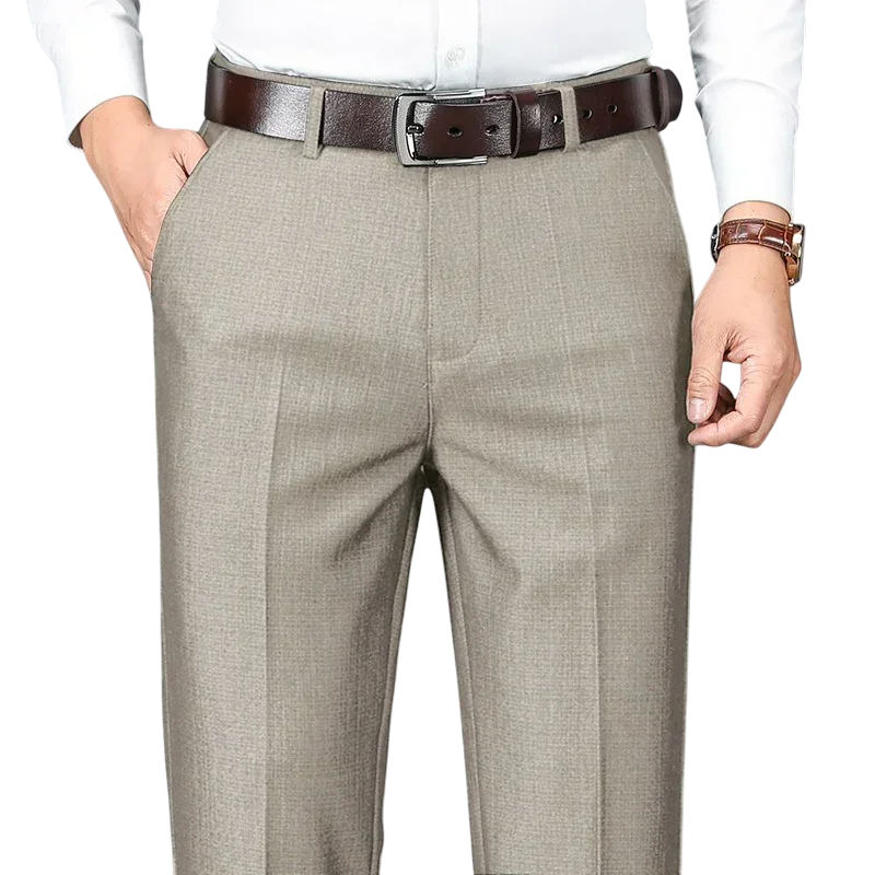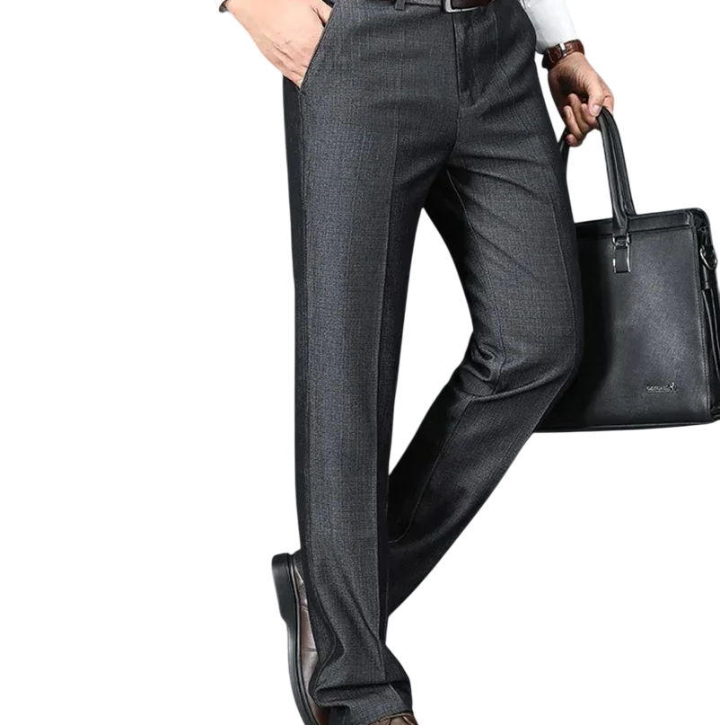 Deras rak passform garanterar komfort och rörelsefrihet, medan den eleganta looken ger ett professionellt intryck. Byxorna finns i flera färgvarianter, så varje man kan hitta en stil som passar hans smak. Tack vare den högkvalitativa konstruktionen är de lämpliga både för vardagligt bruk och för formella tillfällen.