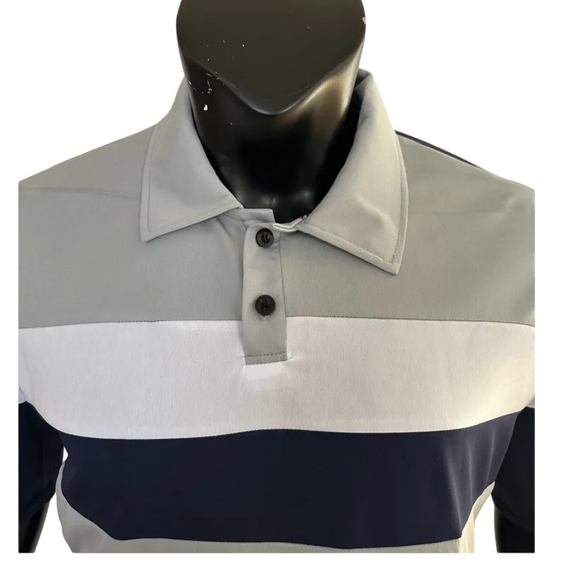 Startsida Startsida Kläder och accessoarer Herrkläder Herr T-shirts Herr T-shirts med kort ärm Herrpiké kortärmad med krage och knappar Randig elegant t-shirt i polyester för vardagsbruk