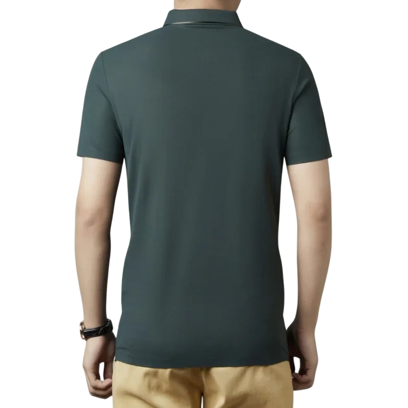 Herrpolotröja kort ärm med krage och knappar Enfärgad elegant tröja av polyester och spandex