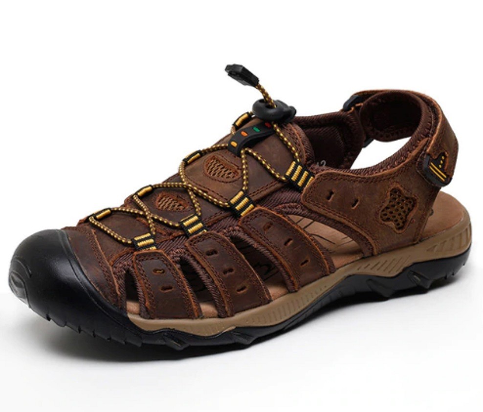 Du kan njuta av sommarvandring i dessa herrsandaler med hel tå.