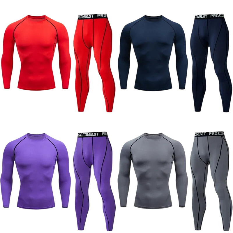 Startsida Startsida Kläder och accessoarer Herrkläder Herr T-shirts Herr funktionella T-shirts Herrset med leggings och långärmad tröja, rund hals, polyester