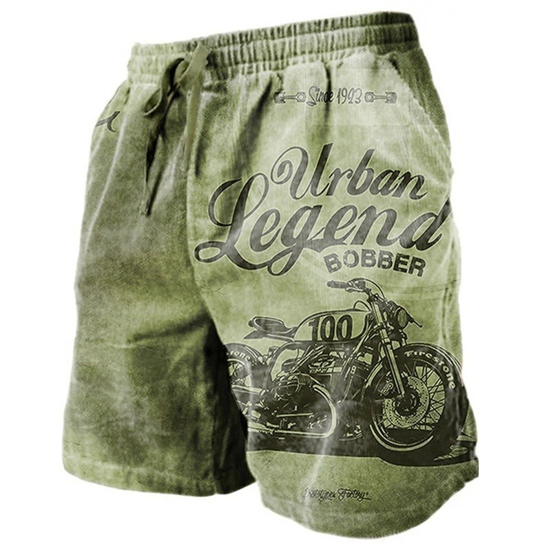 Dessa sommarshorts för män med vintage-motorcykeltryck kombinerar lätthet, komfort och en elegant look till den perfekta outfiten för varma dagar. De är tillverkade av ett andningsbart och lätt material som låter luften cirkulera och håller dig torr även vid högre temperaturer. Den elastiska midjebandet med dragsko gör att du kan justera shortsen exakt efter dina behov, så att du känner dig bekväm hela dagen. Vintage-motorcykeltrycket ger shortsen en unik känsla som alla älskare av fritidsstil kommer att uppskatta.