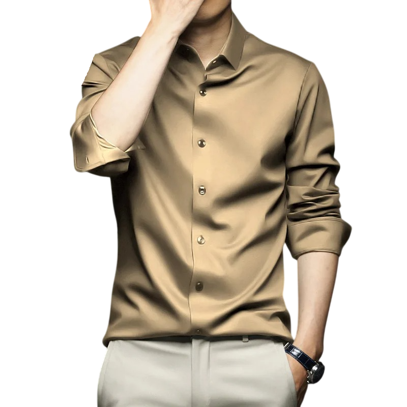 Denna herrskjorta är designad för män som föredrar en ren och välvårdad stil utan onödiga detaljer. Den enfärgade designen ger ett tidlöst intryck och är lätt att kombinera med byxor, jeans och kavaj. Tack vare kombinationen av polyester och spandex erbjuder skjortan en behaglig känsla vid användning och lätt elasticitet som anpassar sig till kroppens rörelser. Den klassiska knäppkragen och knäppningen framhäver den eleganta looken som är lämplig både för arbete och fritid.