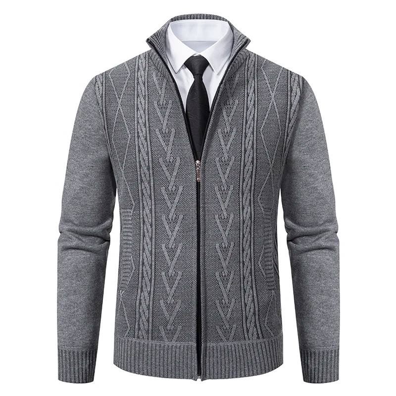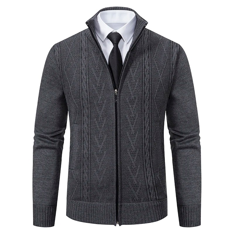 1× herrstickad kardigan med dragkedja och polokrage (vald färg och storlek)