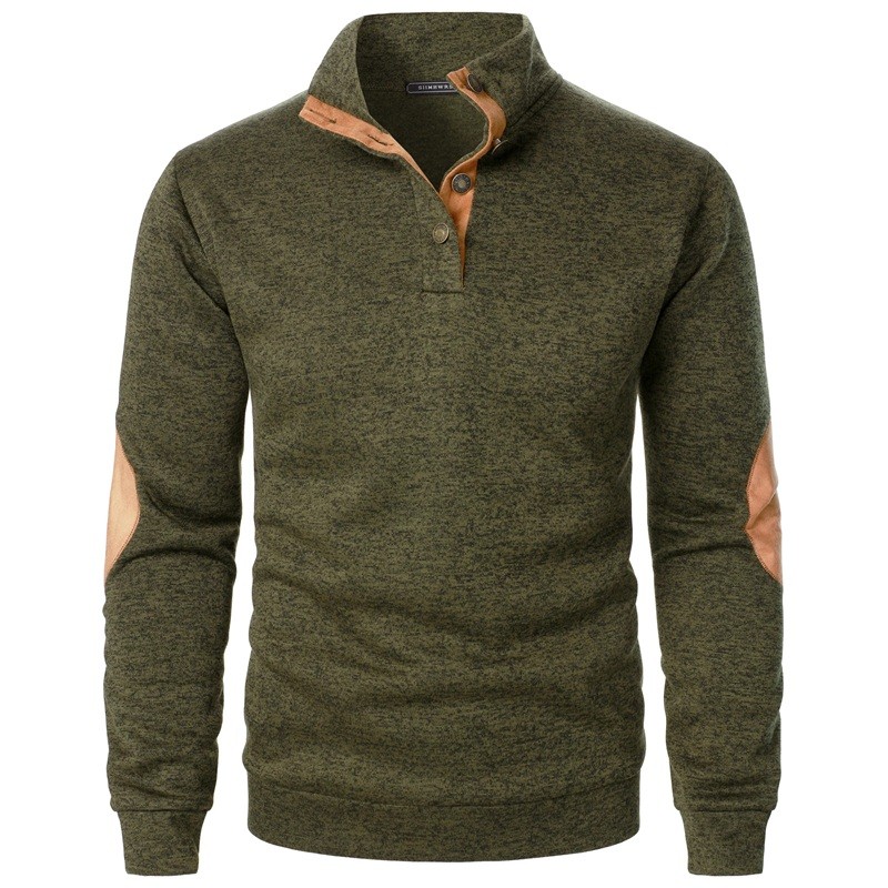Herrtröja med lång ärm och krage Enfärgad elegant tröja med knappar vid kragen Bruna lappar på armbågarna Polyester Flera färger Fullständig beskrivning