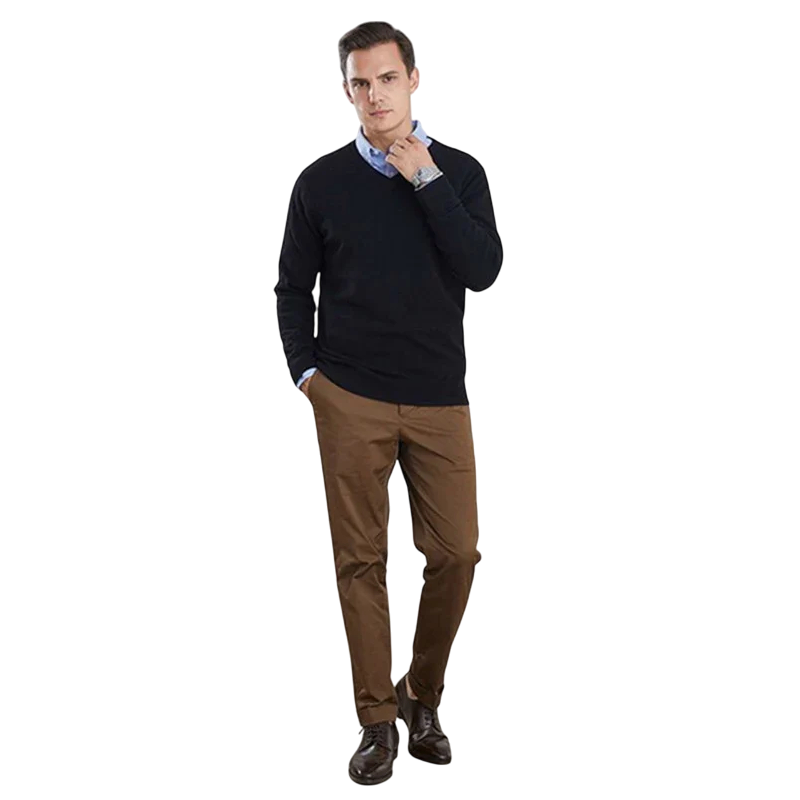 V-ringningen möjliggör enkel lager-på-lager med en skjorta eller t-shirt och skapar en elegant look som är lämplig för kontoret och sociala evenemang. Materialet är mjukt, elastiskt och hållbart, så tröjan behåller sin form även efter långvarig användning. Tack vare sin mångsidighet kommer detta plagg att bli en favorit i herrgarderoben.