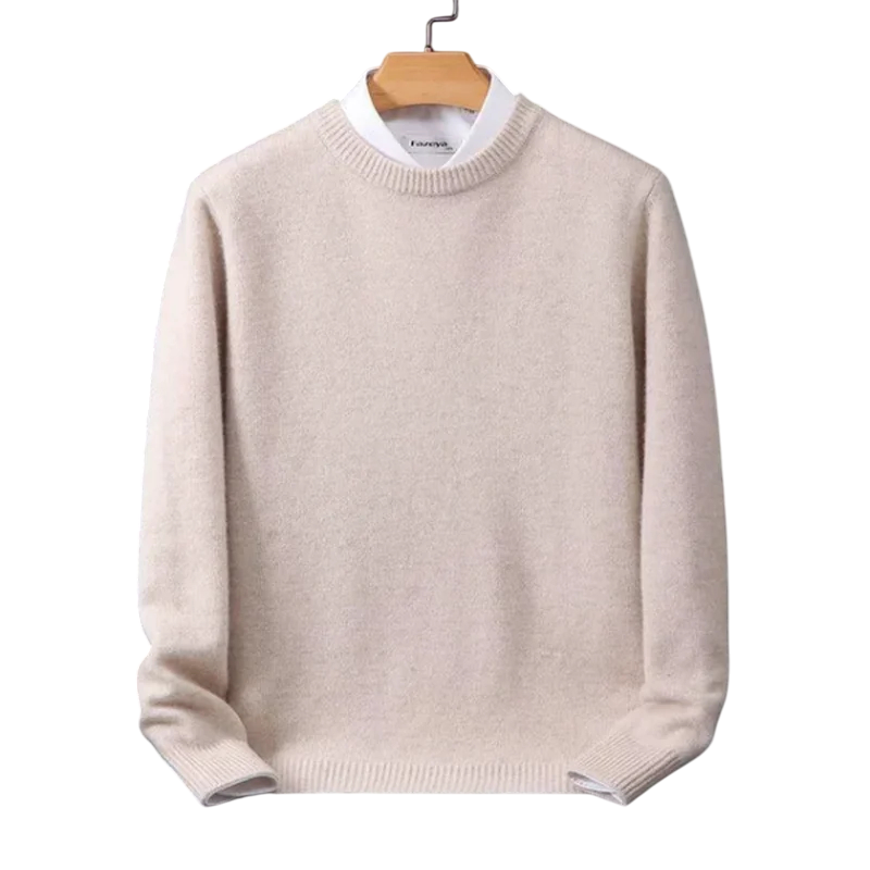 Herrtröja med rund hals Enkel och elegant tröja i kashmir och bomullsblandning Mjuk och bekväm stickad tröja Finns i olika färger