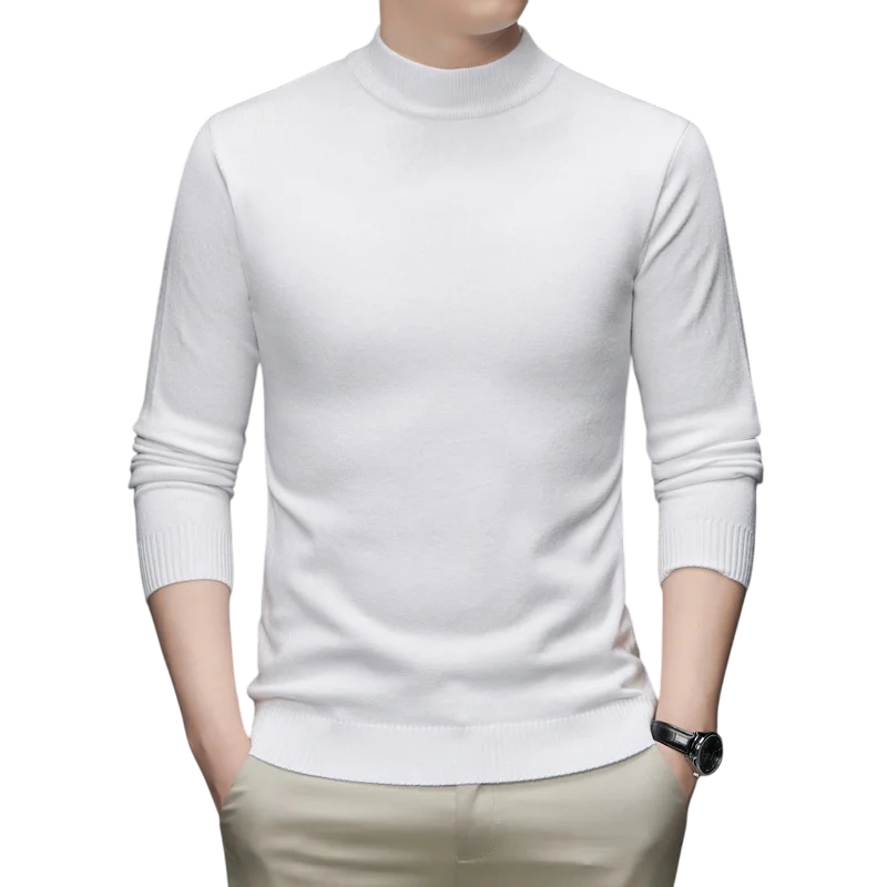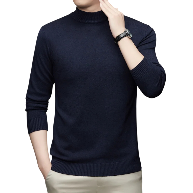 Stilren herrstickad tröja med lång ärm och rullkrage, tillverkad av hållbar polyester, finns i flera färger, idealisk för kalla dagar. Fullständig beskrivning