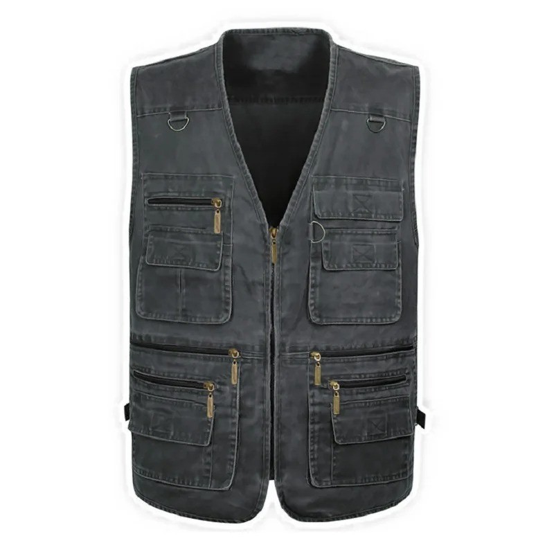 Herrväst med fickor och dragkedja i bomull och polyester för arbete, fiske, vandring och vardagsbruk