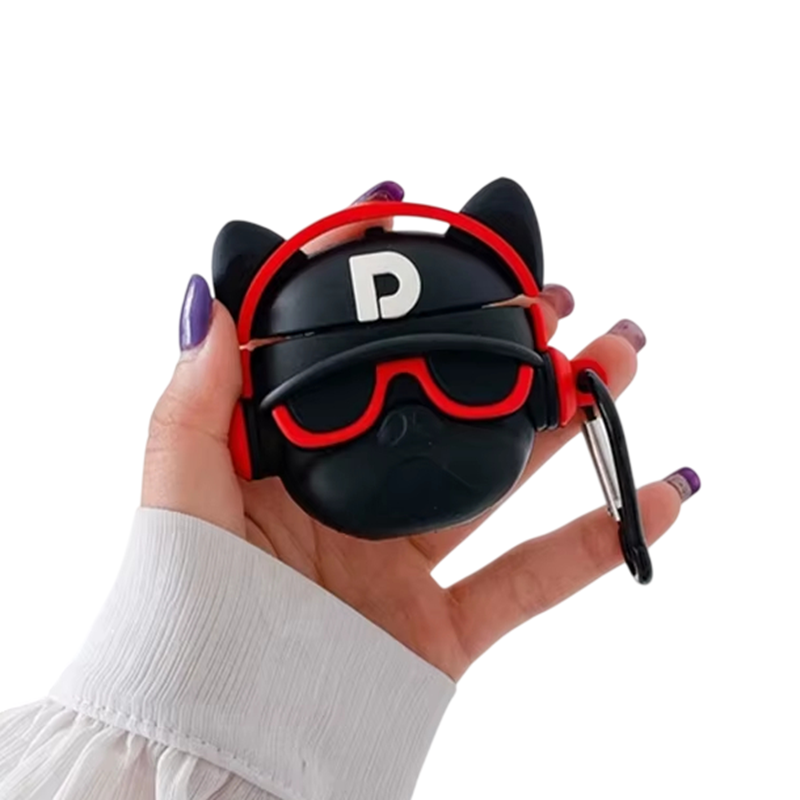 Stiligt fodral för AirPods 4 med 3D bulldog, tillverkat av mjuk silikon, skyddar mot repor, stötar och damm. Lättillgänglig laddningsport. Fullständig beskrivning