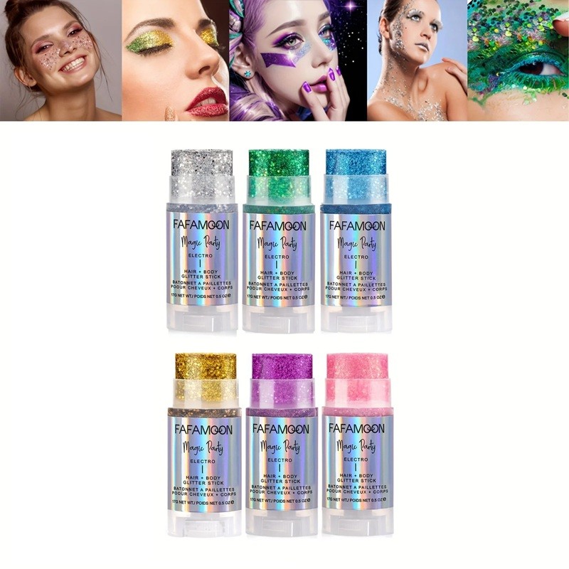 • Holografiska glitter i stift för ansikte, kropp och hår